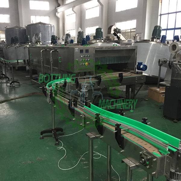 Conveyor brings bottles into the cooling tunnel, there will be cooling water generated from side holding tanks to spray by spray nozzles on the top of tunnel onto passing bottles. With heat exchange principle, the bottles temperature will be low down to normal room temperature to increase product shelf time.